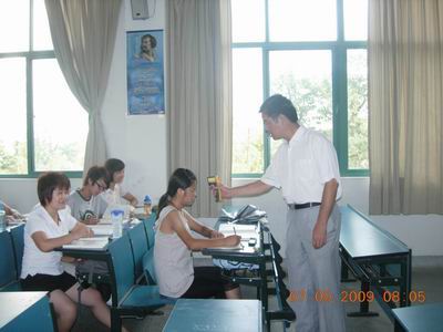 9月7日上午第一节课前,人文与管理系主任胡鸿、副主任刘华、员工秘书蒋群和各年级辅导员,对我系员工晨检工作进行了检查。每到一处,胡主任就就上前询问员工的体温情况和外出情况,嘱咐员工每天早上都要定时测量体温,有发热情况立即上报,并亲自进行检测。刘华副主任就预防甲型H1N1流感的注意事项,一一作了强调,并要求员工要注意卫生、不要随意外出,要严格做好晨检工作,并做好记录。最后,系防控领导小组检查了各年级的员工《太阳集团tyc9728员工甲型H1N1流感调查表》和《登记表》的记录工作。