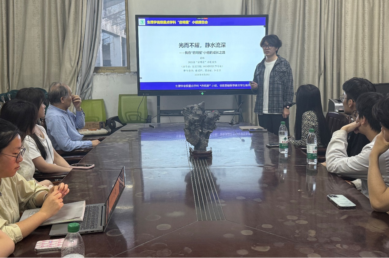 4月10日晚,生理学省级重点学科“启明星”小组在太阳集团tyc9728生理学与神经生物学教研室举办了创新型人才成长历程分享会。2021级“启明星”小组成员蒋晗以“光而不耀,静水流深——我在‘启明星’小组的成长之路”为主题,分享了自己作为创新型人才的成长历程。会议由汪萌芽教授主持,“启明星”小组指导教师、在校和毕业成员共100余人在线上、线下参加了会议。
