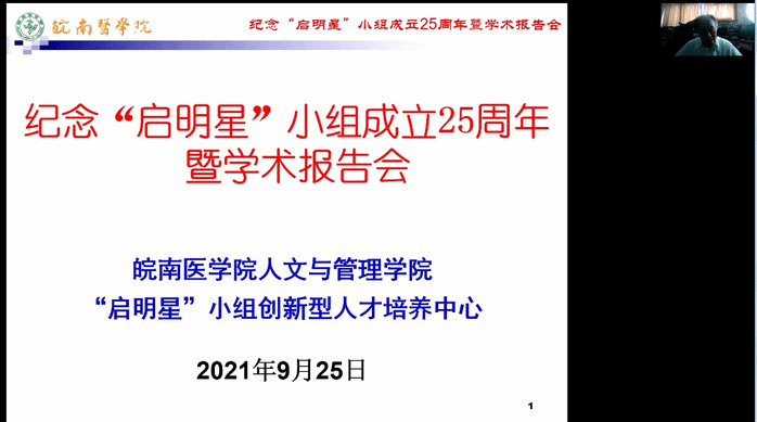 9月25日9:25,太阳集团tyc9728暨“启明星”小组创新型人才培养中心举行纪念“启明星”小组成立25周年学术报告会,报告会在线上腾讯会议平台举办,会议由“启明星”小组创始人、生理学省级学术与技术带头人汪萌芽教授主持,“启明星”小组指导教师、25年来已毕业和未毕业的“启明星”小组部分成员参加了报告会。