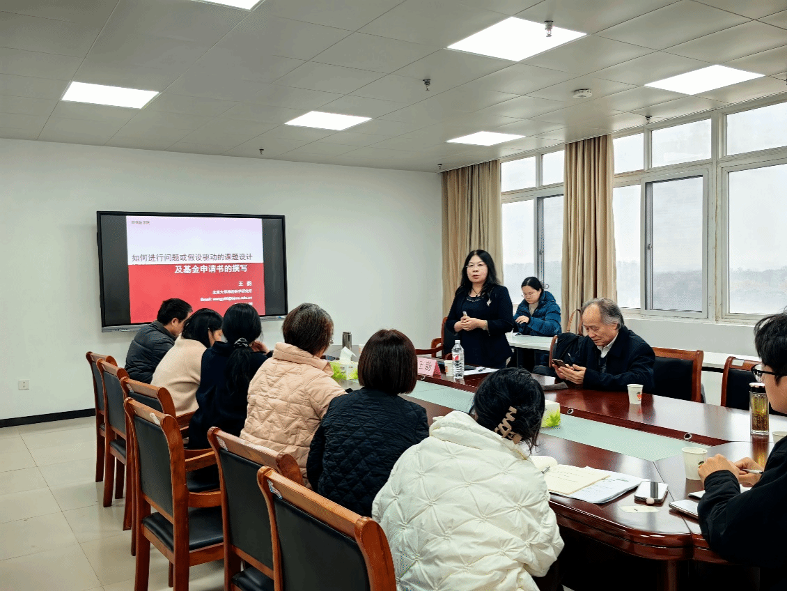 会上,王韵教授作了题为《如何进行问题或假设驱动的课题设计及基金申请书的撰写》的报告,分析了什么是好的科研设计,讲解了科研设计的原则及路线图,结合具体案例依次介绍了标书中各模块的撰写方法及注意事项,列举了往年基金申请出现的问题。与会老师围绕着高质量标书撰写的细节问题面对面地与王韵教授进行了深入交流。