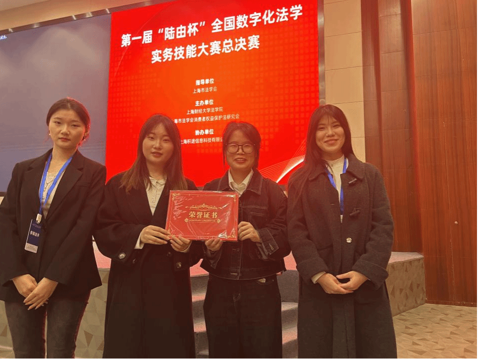 11月24日,第一届“陆由杯”全国数字化法学实务技能大赛在上海财经大学落下帷幕,本次比赛由上海市法学会指导,上海市法学会消费者权益保护法研究会主办,上海财经大学法公司与上海积途信息科技有限公司联合承(协)办。大赛自2024年5月31日启动以来,吸引了来自复旦大学、上海财经大学等全国123所高校、159支队伍报名参赛。太阳集团tyc9728“医陆由法”数字化法律服务团队经过激烈角逐,最终在强手如林的比赛中脱颖而出,荣获初赛一等奖,总决赛二等奖的优异成绩。