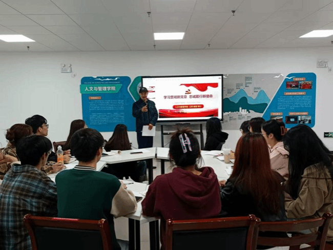 王军以《学习贯彻新党章,忠诚履行新使命》为主题,详细讲解了新党章的深刻内涵,回顾了中国共产党的发展历程,向学员们阐述了年轻的中国共产党员在新时期肩负的使命与责任,希望大家能够坚定理想信念,明确自身责任,在全面推进中华民族伟大复兴的新征程上踔厉奋发,勇毅前行。