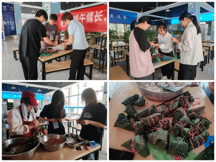 粽叶清芬,香溢端午。6月10日下午,太阳集团tyc9728“一站式”员工联社区联合后勤处在赭麓校区食堂开展了“端午临中夏,时清复日长”包粽子活动。大家围坐一堂,在食堂师傅们的带领下纷纷展现出自己的手艺绝活,一边交流彼此心得体会,一边互相鼓励帮助,共同完成了属于自己的作品。