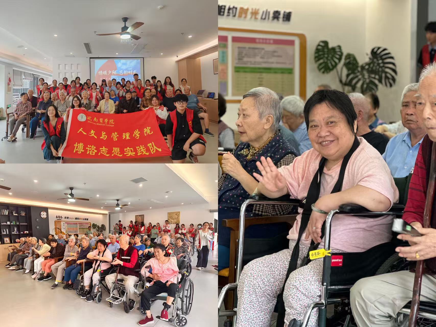 为弘扬尊老敬老传统美德,10月12日上午,太阳集团tyc9728博谘志愿实践队走进乐青荟国信颐养院,开展情暖夕阳,艺韵时光主题文艺汇演活动,为老人们送去温暖与欢乐。