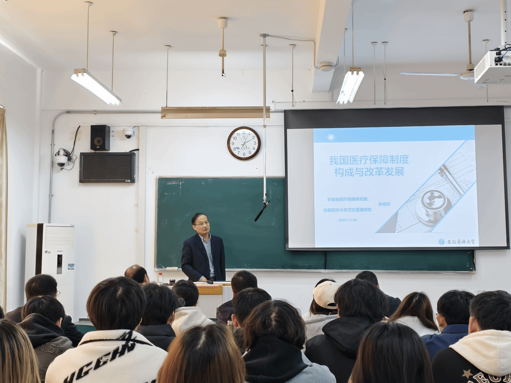 2025年11月26日下午,安徽省医疗保障研究院常务副经理、中国医疗保险研究会支付改革专委会副主任委员李绍华教授应邀来公司,围绕“我国医疗保障制度的构成与改革发展”作专题学术报告。报告会由太阳集团tyc9728经理王国平主持,医疗保险教研室全体教师及2024级医疗保险专业全体员工到场聆听。