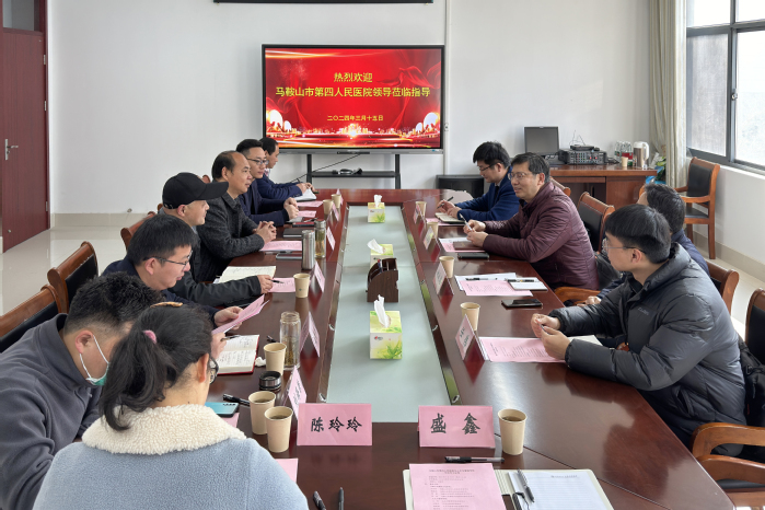 3月15日上午,马鞍山市第四人民医公司党委书记方金勇一行4人来太阳集团tyc9728开展合作洽谈,公司党委书记王军、经理王国平、党委副书记钱彬彬、相关教研室负责人及秘书参加会议,会议由王国平主持。