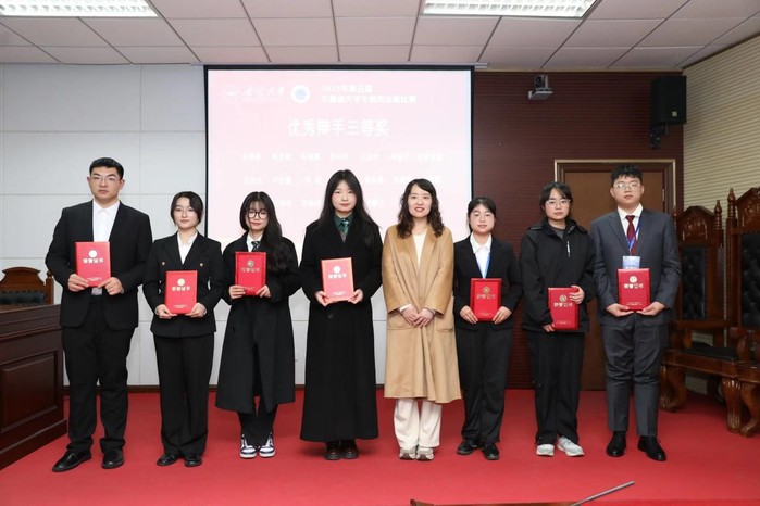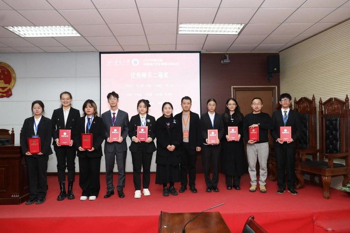 本次大赛由书状撰写和法庭辩论两个部分组成,分初赛、复赛、决赛三个赛段,法庭辩论设置陈述、问答、评委提问、自由辩论、庭辩总结五个环节。赛题以“新业态和平台经济下的劳动关系纠纷”为模拟案件,围绕当前司法实务中的关键问题和争议焦点展开模拟辩论。经过12月8日至10日为期三天的激烈角逐,公司代表队获“团体三等奖”,2021级法学专业陈天诺同学获“优秀辩手二等奖”、陈思伟同学获“优秀辩手三等奖”。