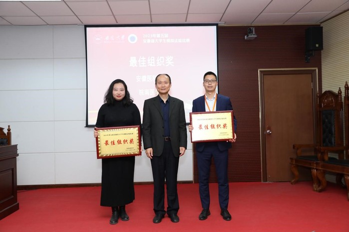 12月10日,由安徽省教育厅主办,安徽省法学会、安徽省法官协会、安徽省检察官协会、安徽省律师协会协办,安徽大学承办的“2023年第五届安徽省老员工模拟法庭比赛”在安徽大学法公司圆满落下帷幕。来自全省21所开设法学专业的高校代表队参加了比赛,公司代表队在本次大赛中再创佳绩,喜获“最佳组织奖”、“团体三等奖”各1项,1名同学获得“优秀辩手二等奖”,1名同学获得“优秀辩手三等奖”,实现了奖项类别和奖项数量上的新突破。