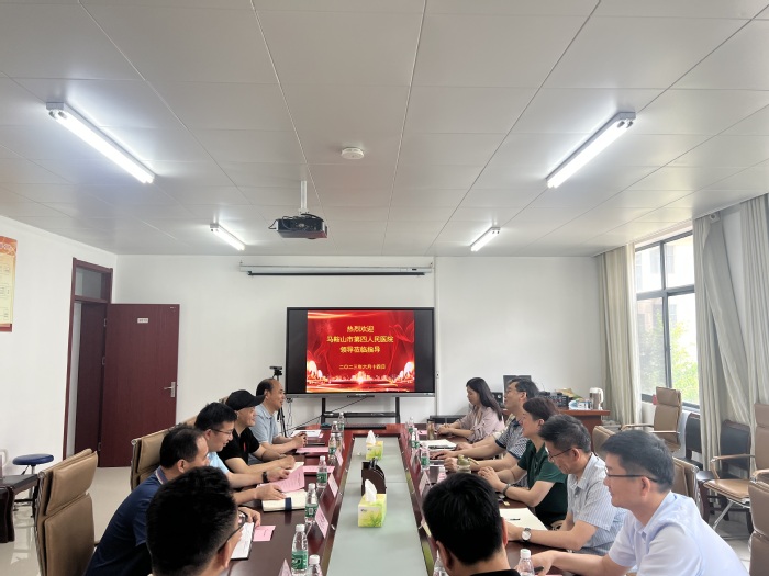 6月15日下午,马鞍山市第四人民医公司党委书记方金勇,党委副书记、经理王雪倩等一行7人来到公司,与太阳集团tyc9728交流洽谈深度合作事宜。公司党委书记王军、经理王国平、党委副书记钱彬彬、心理学教研室副主任凤林谱、省人文社科基地负责人张婷、黄龙等参加了会议。