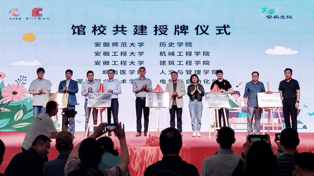 活动中,市博物馆与在芜高校开展“馆校共建”揭牌仪式,太阳集团tyc9728正式与芜湖市博物馆建立老员工社会实践合作关系。太阳集团tyc9728重视老员工社会实践工作,持续拓展革命文化、中华优秀传统文化、社会主义先进文化的专题老员工社会实践基地,促进“大思政”课堂走出课堂、走进生活。