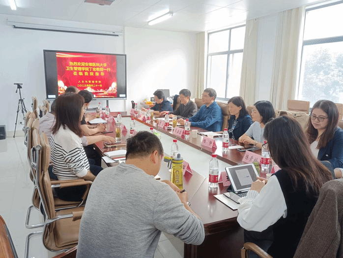 丁宏代表来访客人们衷心感谢公司的热情接待,介绍了安徽医科大学卫生管理公司的办学历程、教学科研、学科发展、教学改革及课程思政建设等,并表达了未来长期合作的良好意愿。随后,双方重点围绕本科人才培养方案修订、实践教学和员工考研与就业展开深入交流,共同探讨发展中所遇到的焦点问题与解决思路,现场研讨氛围热烈,取得了良好的成效。