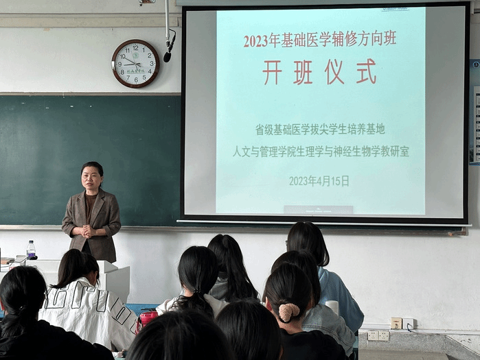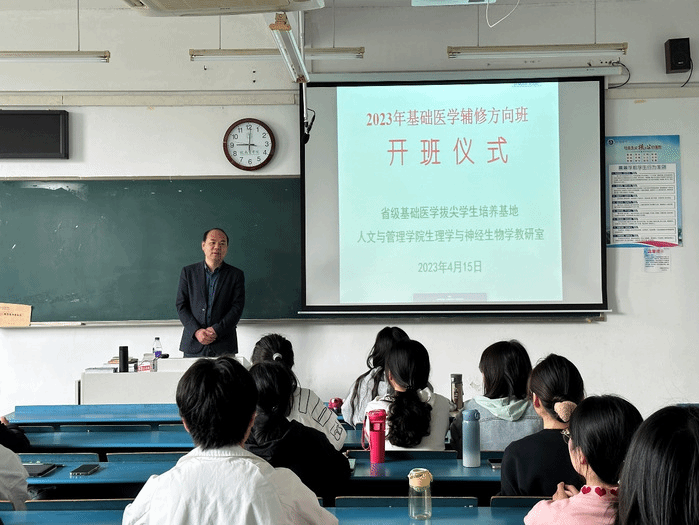 4月15日上午,公司2023年基础医学辅修方向班开班仪式在滨江校区1306教室隆重举行,教务处处长黄月娥教授、太阳集团tyc9728经理王国平教授、生理学与神经生物学教研室全体教师及基础医学辅修方向班全体同学参加了开班仪式,汪萌芽教授主持开班式。