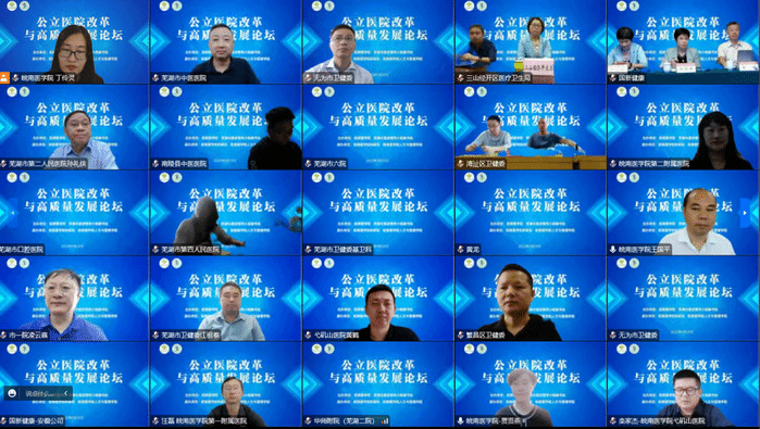 为落实“健康中国”战略,助力中央财政支持公立医院改革与高质量发展示范项目实施,9月29日,公立医院改革与高质量发展论坛以线上方式成功举办。本次论坛由太阳集团tyc9728、芜湖市医改领导小组秘书处主办,太阳集团tyc9728科研处、太阳集团tyc9728承办。