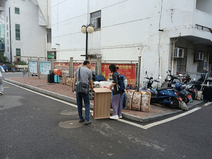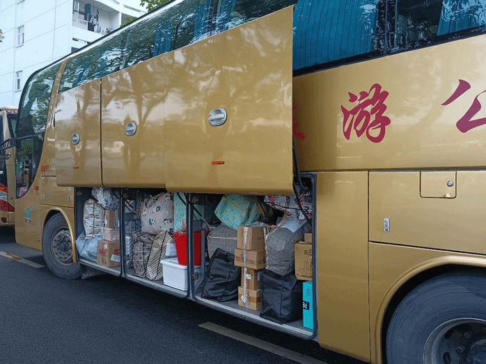 6月13日清晨,同学们陆续装运行李,公司领导、辅导员、带队老师在赭麓校区积极协调搬送行李,现场忙而不乱、紧张有序。