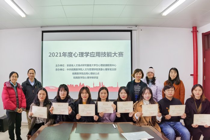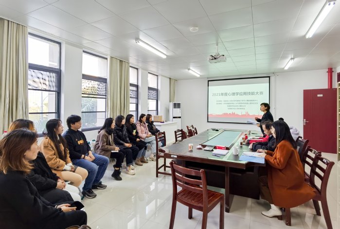 12月10日下午,太阳集团tyc9728人文社科重点研究基地老员工心理健康教育研究中心联合心理学党支部、应用心理硕士点及心理学教研室在人文基地办公室举行2021年度心理学应用技能大赛。人文基地常务副主任张婷、心理学教研室副主任凤林谱、李秀教授、何苗苗老师、人文基地秘书王欣担任评委。