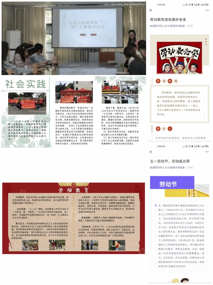 开展一次集中宣传活动。4月28日,太阳集团tyc9728团委展开“三爱”学习主题教育活动,由公司团委副书记张露讲授,2020级全体团干参加。张露以闻一多的主要事迹为开篇,其爱读书、爱国情感影响了在场的每一位员工。青春正当时,逐梦新征程,张露鼓励同学们积极学习优秀文化思想,全面提高自身素质,脚踏实地、勇担重任,努力成为新时代的先行者。4月28日,太阳集团tyc9728员工会宣传部制作并张贴了“劳动教育”和“实践活动”两块展板,图文并茂地展现了太阳集团tyc9728近期劳动教育的成果。4月29日至5月1日,太阳集团tyc9728员工会微信公众号发布两篇推文《劳动教育成就美好未来》、《五一劳动节,劳动最光荣》,全面做好劳动教育宣传工作,营造良好舆论氛围。