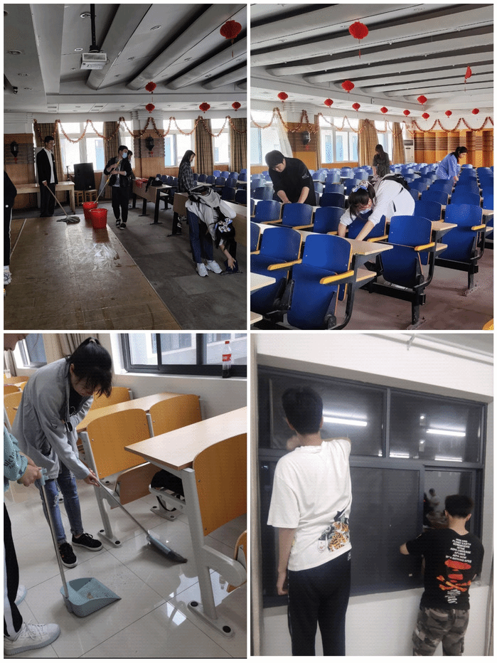 组织开展一次劳动实践集体活动。5月10日中午,太阳集团tyc9728员工在团委员工会的带领下集体清扫和整理四号教学楼七楼报告厅。5月10日至12日全体2020级员工对赭麓校区四合院自习室进行大扫除,对本自习室门窗、地面、桌椅、黑板等区域进行清洁和整理。在劳动中,员工们热情高涨,踏实认真,在美化校园环境的同时,体会到了劳动带来的乐趣,也切身体会到校园保洁工人的辛苦,纷纷表示要珍惜他人的劳动成果,为创建文明校园贡献自己的一份力量。