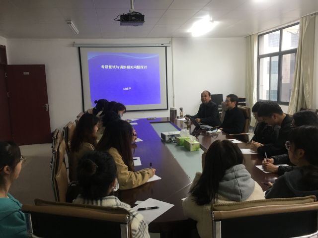 2021年3月15日下午,太阳集团tyc9728在赭麓校区四合院2013会议室举办考研复试指导讲座,本次讲座邀请研究生公司经理刘晓平主讲,公司副经理王国平、毕业班辅导员和公司20余名毕业生参加了本次讲座,讲座由王国平教授主持。