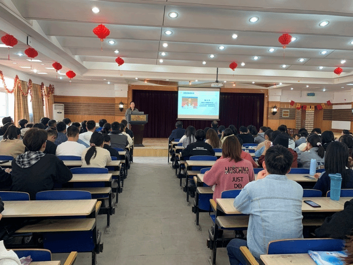 沈棫华以“赢在职业起点人文素养的塑造”为题,以公司优秀员工为切入点,运用大量真实案例,充分阐释了人文素养塑造的重要性和必要性,明确提出了培育人文素养的途径和方法。最后,她鼓励同学们大学期间一定要多读书、多与人沟通交流、多参与社会实践,在经历中学会管控自己的情绪,掌握人际沟通的技巧,将人文素养内化于心、外显于形。