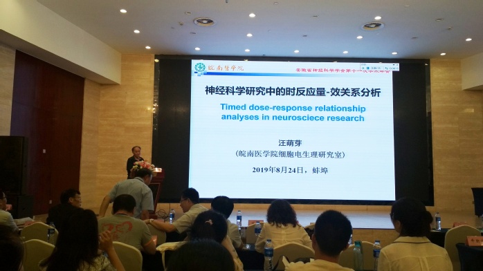 公司师生共提交会议摘要15篇,其中汪萌芽教授应邀作了题为“神经科学研究中的时反应量-效关系分析”的大会报告,报告中汪教授理论联系实践,生动形象地阐述了在神经科学研究中的定量分析方法,得到与会同行的一致好评。会议期间,汪萌芽教授还主持了专题报告会和范明教授的特邀报告,并出席了学会的常务理事会议。
