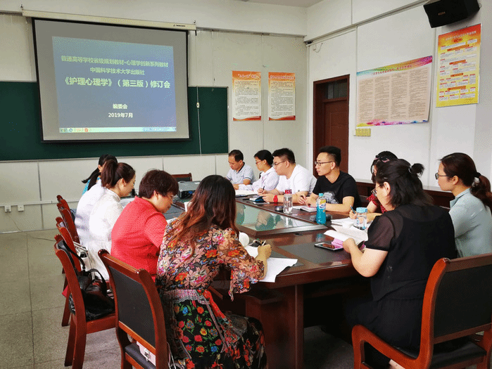 2019年7月12日,心理与健康促进科技创新团队在心理学教研室召开《护理心理学》第三版教材编写修订会议,太阳集团tyc9728、安徽中医药高等专科公司、芜湖第四人民医院等单位的编委参加了会议。会议由杭荣华主持。