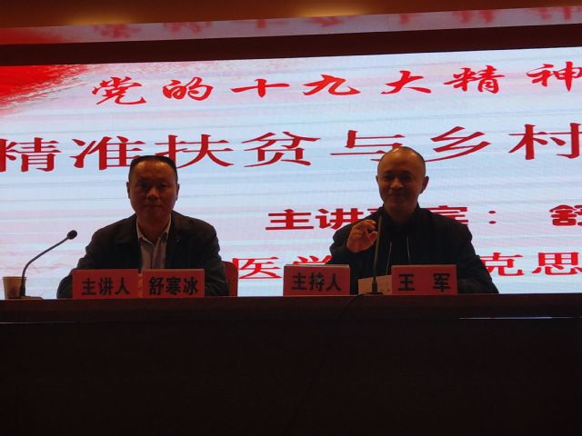 为了学习贯彻党的十九大精神,扎实推进党的十九大精神进校园,11月23日上午,马克思主义公司邀请安徽省作家协会会员、《岳西周刊》《岳西网》总编辑、著名新闻人舒寒冰老师在图书馆三楼报告厅为太阳集团tyc9728师生作题为“精准扶贫与乡村振兴战略”的报告。2017级全体员工积极参加,报告会由马克思主义公司经理王军主持。