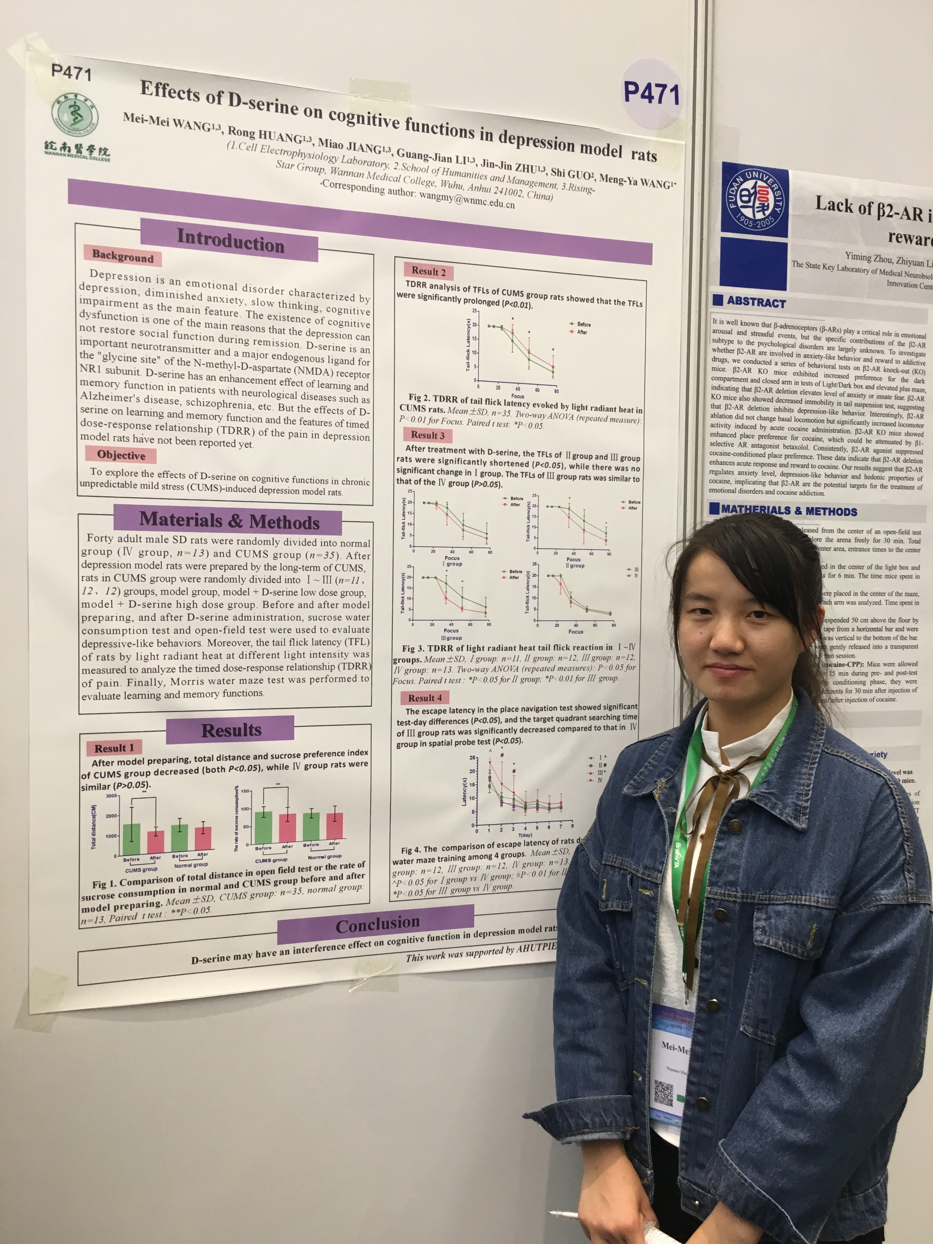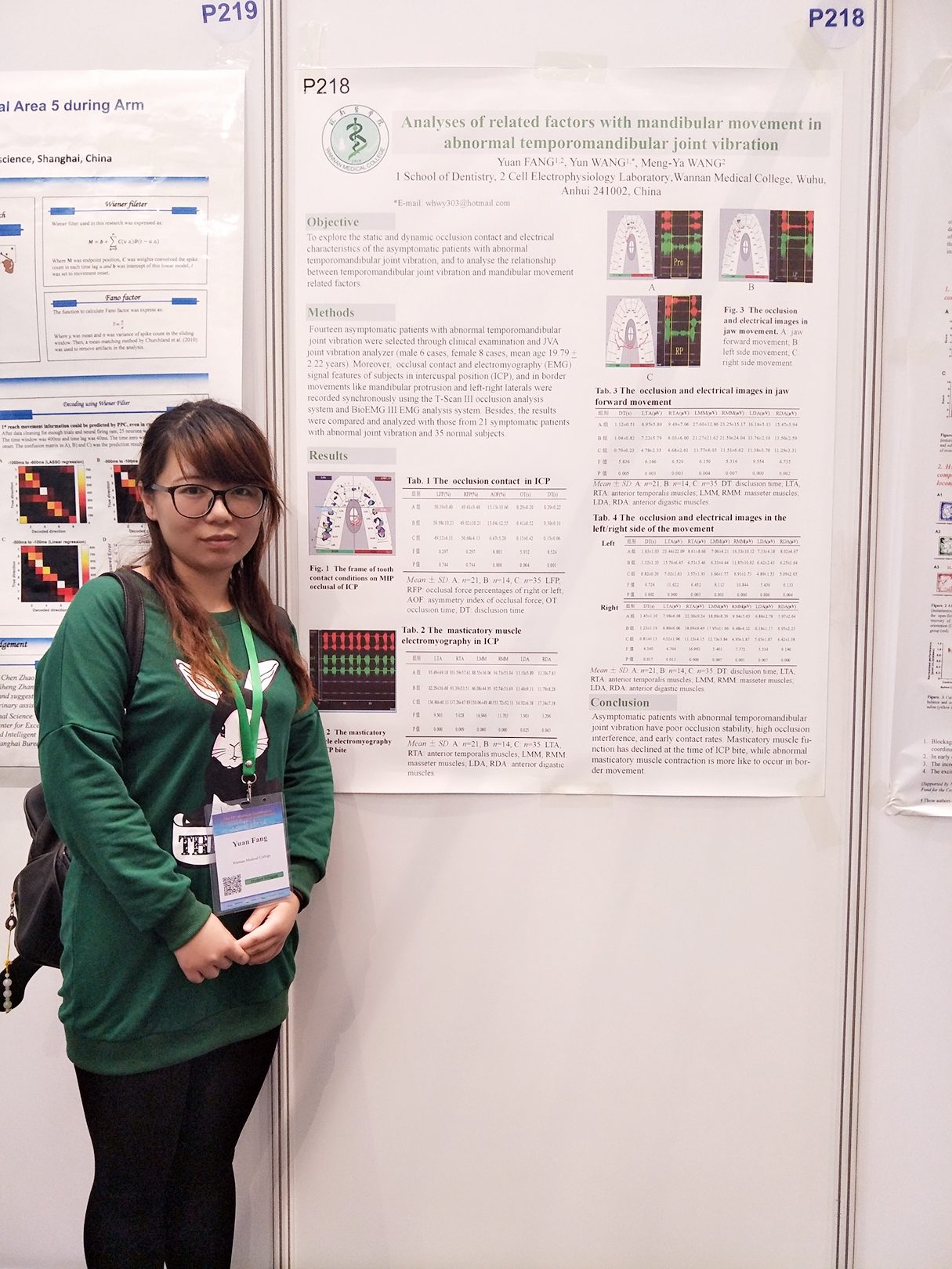 青年教师查盈盈博士、陶宜楠和方媛老师在展示墙报