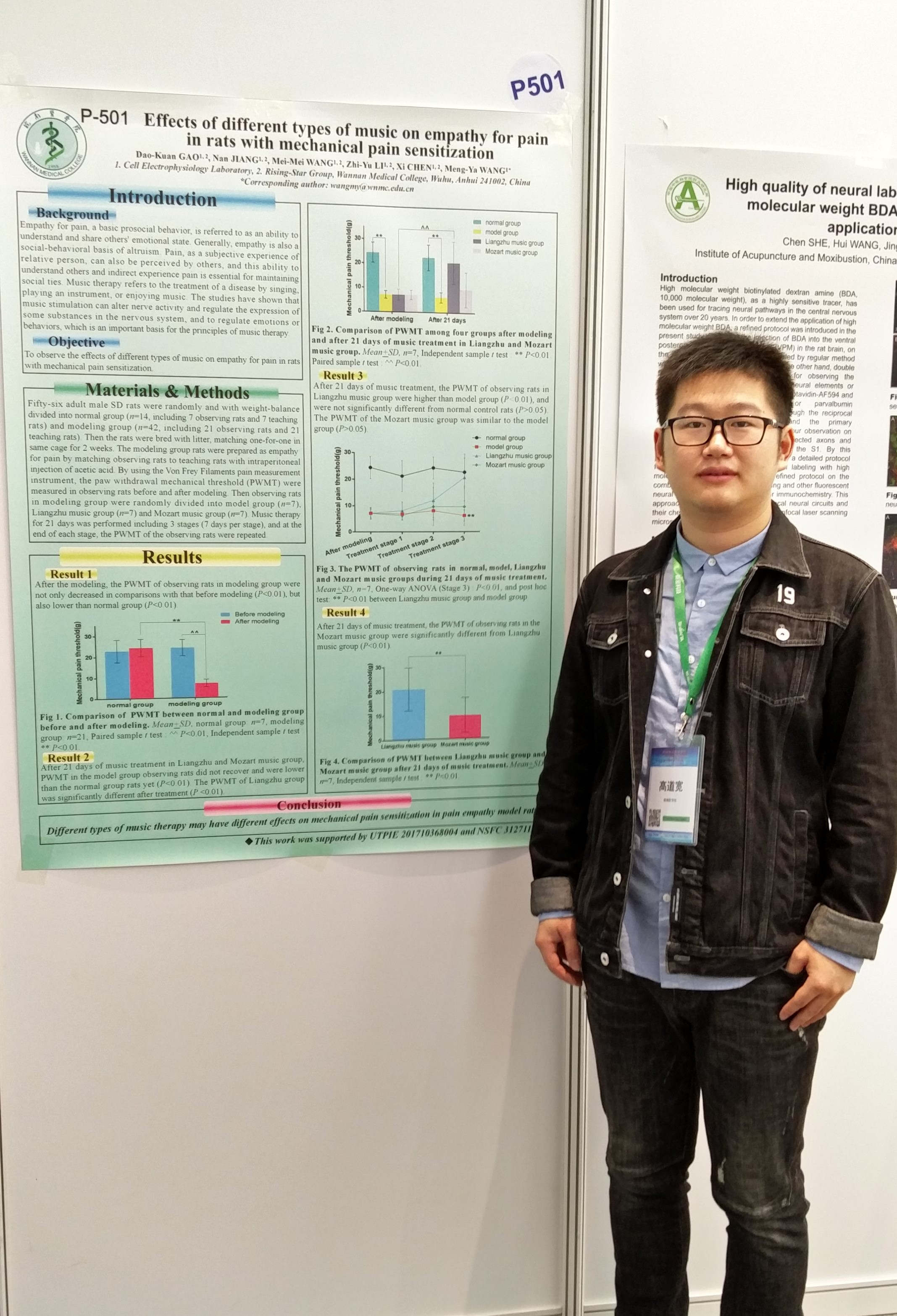 在这次学术盛会上,公司神经科学团队共提交17篇英文会议摘要,其中“启明星小组”成员提交了12篇,这些源自生理学重点学科旗下创新型人才培养的成果,再次向国内外同行展示了公司“启明星小组”品牌的风采,扩大了人才培养和学术影响力。会议期间,多所知名院校的专家对“启明星小组”成员成团队参加这样国际化的学术会议交流,倍感惊讶,也对培养模式产生了浓厚兴趣,给予了充分的肯定和高度评价,不仅与“启明星小组”的指导教师热情交谈、分享经验,还诚挚邀请“启明星小组”成员将来去他们实验室深造。自身的付出和努力获得了同行专家的肯定和褒奖,也让与会的“启明星小组”成员无比的兴奋和自豪。通过参加如中国神经科学年会这一高规格、高质量、国际性学术会议,使得“启明星小组”创新型人才培养的理念得到进一步升华,对于员工真正满足了跨学科、跨专业的训练要求,也进一步实现了医学教育向“生物-心理-社会医学模式”转变的复合性创新型人才的培养目标。