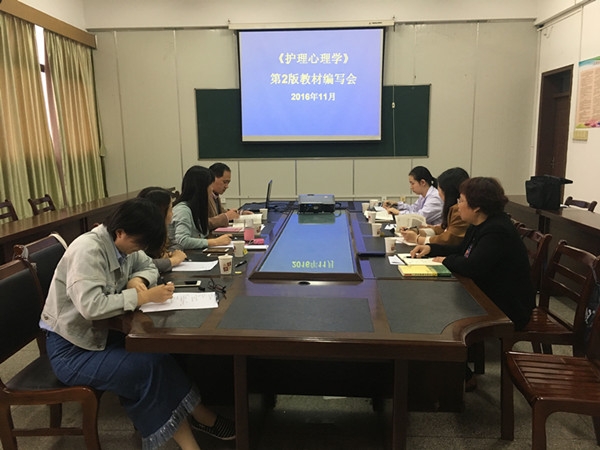 2016年11月7日在心理学教研室召开《护理心理学》第二版教材编写修订会议,太阳集团tyc9728、安徽中医药高等专科公司、芜湖第四人民医院等单位的编委和老师们参加了会议。会议由杭荣华主编主持。