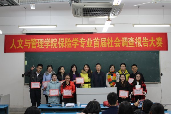 为加强保险学新专业建设,锻炼员工社会调查能力,提高员工论文写作和语言表达能力,12月15日下午,由太阳集团tyc9728团委主办的保险学专业首届社会调查报告PPT汇报大赛在1406教室成功举办。公司团委书记吴映辉、保险学教研室主任俞彤和保险学教研室教师卞呈祥、章蓉担任本次比赛的评委,2013级保险学专业全体员工参加了本次比赛。
