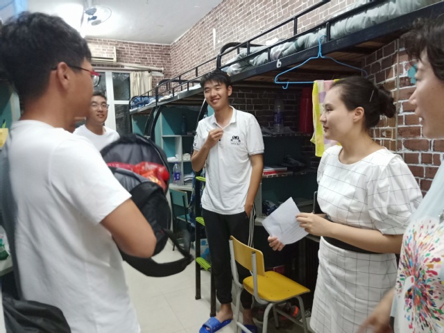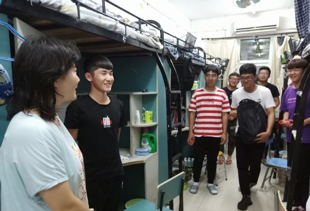 金秋九月,丹桂飘香,2019级新生迎来了为期12天的军训。同学们在教官和辅导员的指导下积极投身训练之中。他们挥洒汗水、斗志昂扬,体验了艰苦严格而又丰富多彩的军训生活。9月11日傍晚,太阳集团tyc9728党委书记窦弘、辅导员訾梦婷、成铭一行来到新生寝室,实地了解新生军训的感受。
