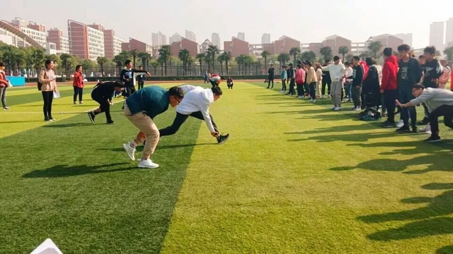 比赛期间,每组同学都积极投入,争取用最快的速度取得满意的成绩,赛场上竞技不断,欢笑声也充满了整个赛场。人管健儿们以列队的形式进行比拼,展现出了各自的风采。“你画我猜”比赛中,大家的欢笑声充盈了整个操场。在“手足情深”项目中,他们肩并肩手挽手,喊着同样的口号,向着同一个方向前进。短短的几十米,跌倒或成功,他们都荣辱与共。在“跳长绳”这个项目中,我们能看到同学们一个接着一个在长绳下跳动的身影。即使偶有失误,但我们没有听到责备,有的只是同学间互相鼓励的声音。整个比赛过程的气氛热烈但又不失轻松愉快,参赛的同学们尽力完成每一项项目,全身心地投入到比赛当中,在场同学不时地鼓劲呐喊,不时地欢声笑语。同学们将青春的光芒发挥到极致,将热情染满整个活动现场。活动的最后,根据比分情况,我们角逐出优胜队伍,获奖的各队队长进行合影留念,记录下这一美好瞬间。