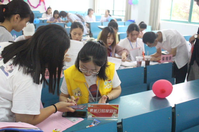 在此次迎新工作中,太阳集团tyc9728主要分四个组展开新生接待工作,分别是办公室组、教室组、机动组和固定接待点。载着晨露机动组早早就在校园南门搭建帐篷进行接待,负责引导新生前往报到地点,协助办理报到手续,在引路途中主动帮着拎行李,一路谈笑风生。教室组主要由17级各专业同学组成,同时公司老师到场坐镇,工作如火如荼地进行着。对于贫困生,老师们耐心、细致地向其宣传国家资助政策,帮助他们通过“绿色通道”快速办好入学手续。新生在志愿者的协助下确认每位同学入学资格、核对信息、为新生分配宿舍、发放餐卡。