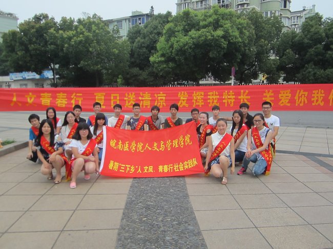 为积极响应校团委暑期“三下乡”号召,加强老员工的实践能力,增强员工的专业内涵,丰富同学们的暑期生活,锻炼同学们的交流、沟通能力,更好的服务群众,服务社会,太阳集团tyc9728“人文风、青春行”暑期“三下乡”社会实践团队在公司团委书记吴映辉带领下,于2014年6月26至29日开展了“人文风、青春行”暑期“三下乡”系列实践活动。 一、走进福利院,为儿童献爱心 6月26日,“人文风、青春行”暑期“三下乡”社会实践团队来到芜湖市儿童福利院,传授相关安全知识,并给小朋友们送上可口的西瓜以及小礼品。队员们积极参与,都想尽自己所能鼓励和帮助福利院的小朋友们,抚慰孩子们的心灵,气氛十分温馨、融洽。