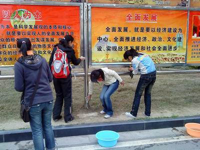 4月1日下午,人文与管理系08级法学2班同学前往一号食堂的展窗附近,开展深入学习实践科学发展观系列活动——清洁宣传栏。