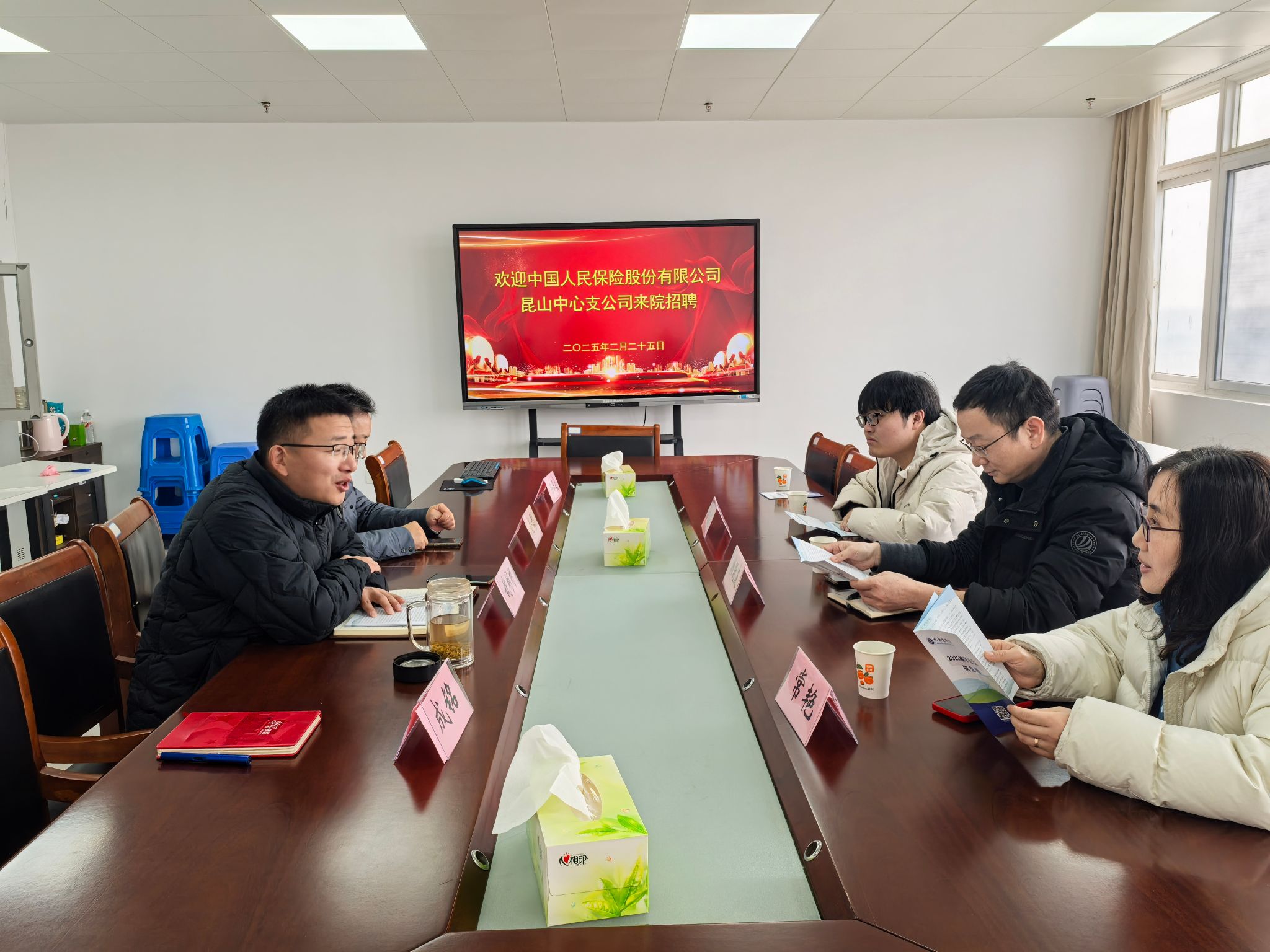 为扎实推进2025届毕业生就业工作,2月25日,太阳集团tyc9728邀请中国人民保险股份有限公司昆山中心支公司来院开展专场招聘。