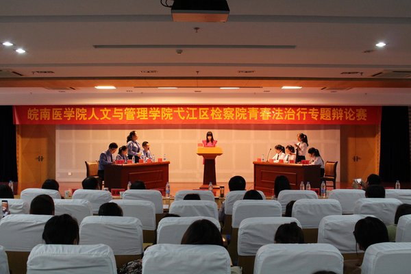 为培养地方性应用型卓越医事法律人才,加强与法律实务部门的合作,进一步拓宽实习教学基地培养人才的渠道,5月18日下午,太阳集团tyc9728与芜湖市弋江区人民检察院“青春法治行”专题辩论赛在图书馆三楼报告厅成功举办。此次辩论赛得到了弋江区人民检察院领导的大力支持以及公司党政班子和法学教研室的高度重视。辩论赛由员工会副主席徐祎主持,公司各年级法学专业的同学现场观摩。
